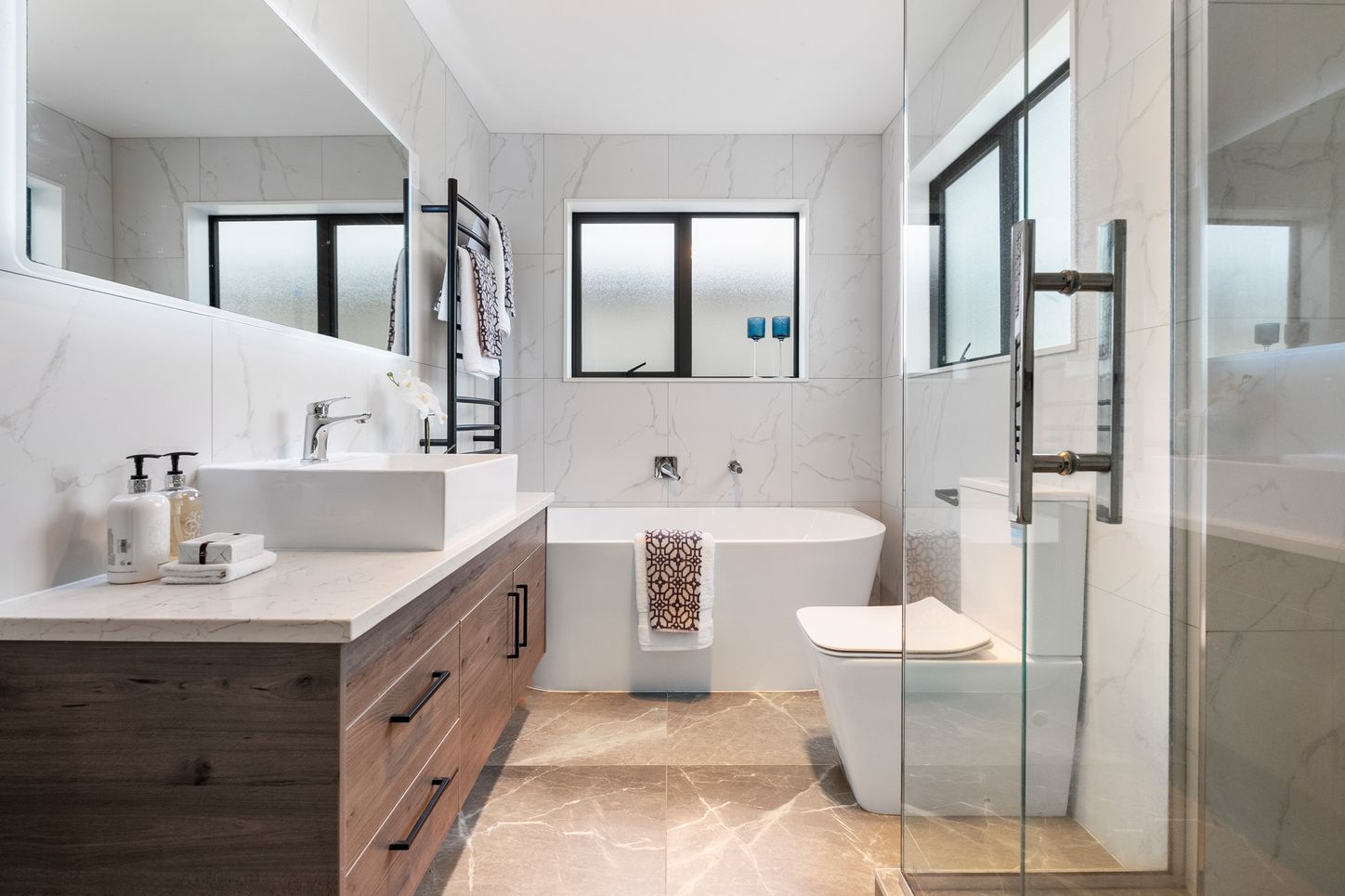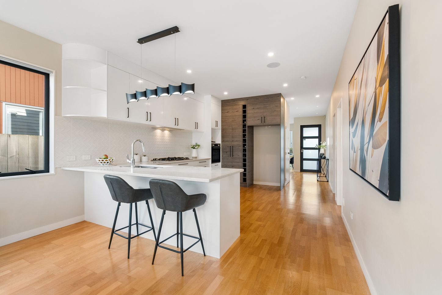 Crisp styling across both levels that shows off the flexible layout without crowding the multiple living areas.